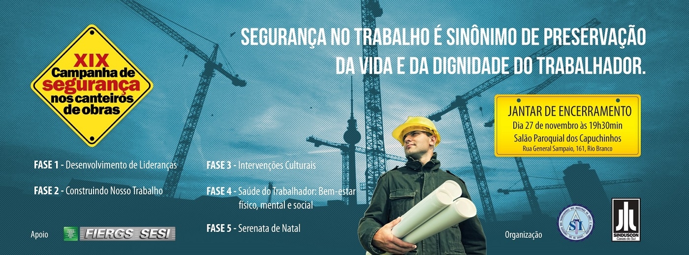 A partir do dia 15 de setembro tem início a terceira fase da Campanha de Segurança nos Canteiros de Obras, denominada “Intervenções Culturais”, que consiste em uma equipe de atores e um técnico de segurança do SESI visitando obras por meio de agendamento prévio. A palestra, com duração de 10 minutos em cada canteiro de obra, pretende fazer uma abordagem de assuntos relevantes à segurança do trabalho, enfatizando a importância da utilização de equipamentos de proteção individual (EPI) e a maneira correta do uso do cinto de segurança.