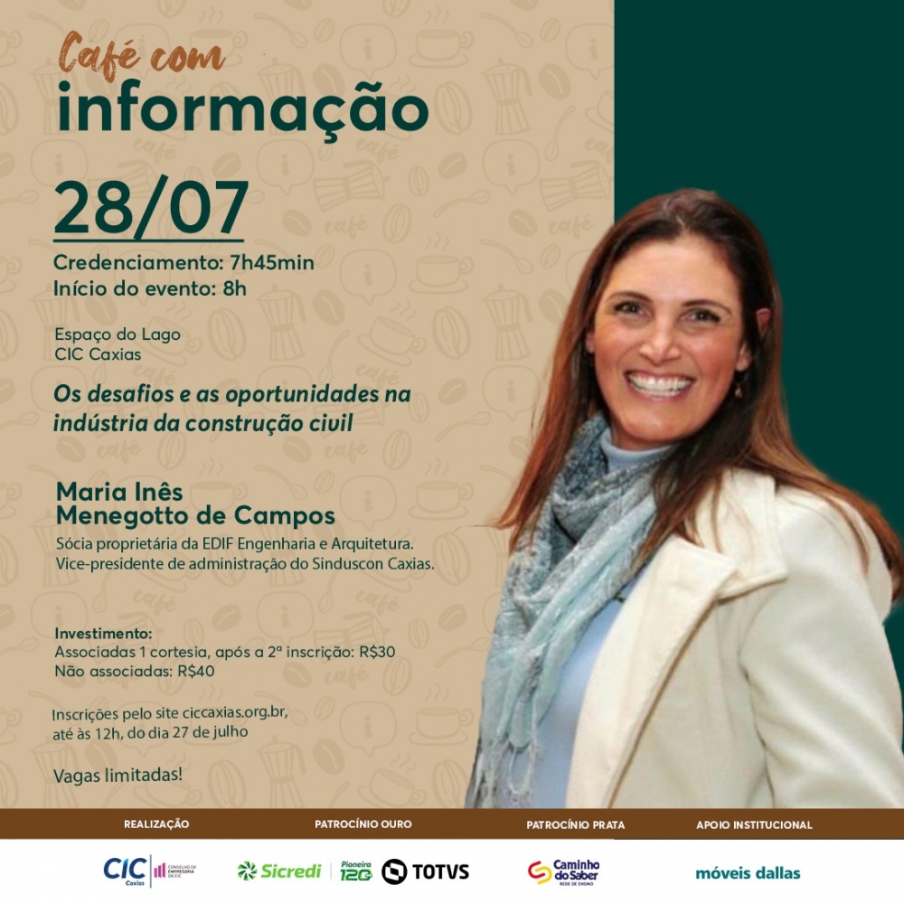 Café com Informação ☕Os desafios e as oportunidades na indústria da construção civil CIC Caxias 28/07 às 8h