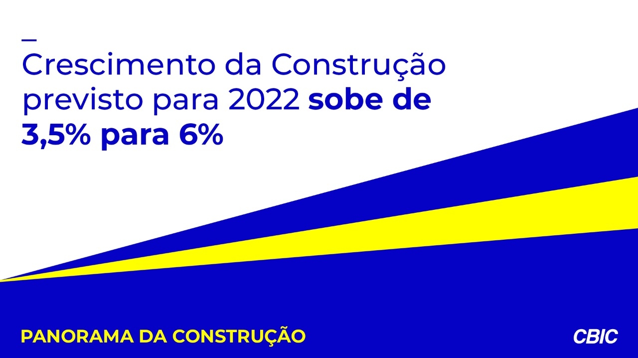 A Câmara Brasileira da Indústria da Construção (CBIC) elevou de 3,5% para 6% a projeção de crescimento do setor em 2022. O número integra o estudo “Desempenho Econômico da Indústria da Construção – terceiro trimestre de 2022”, divulgado pela entidade, nesta terça-feira (1º), em correalização com o Senai Nacional.