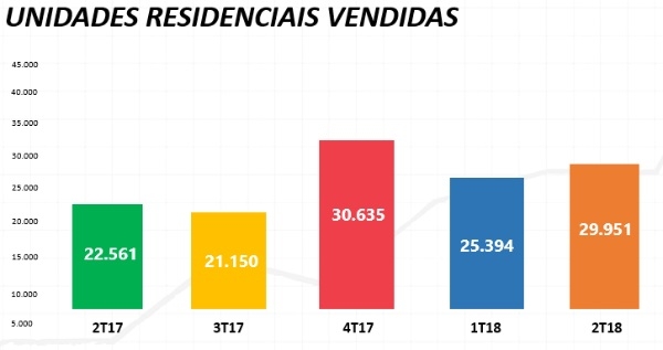 No caso de lançamentos, houve um expressivo aumento de 119,7% em relação ao trimestre anterior e um aumento de 19,9% em relação ao mesmo trimestre de 2017. Tais dados apontam que não apenas há uma recuperação no ano, mas também um incremento relativo ao mesmo período, o que significa, malgrado o humor do mercado, um primeiro semestre de 2018 com mais atividade no setor.