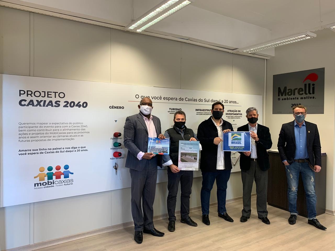 Participaram da reunião o Presidente Rodrigo Postiglione, o Presidente do Mobi Caxias Carlos Zignani, o Diretor do SINDUSCON CAXIAS Sérgio Bortolatto e o Executivo do MOBI Caxias Rogério Rodrigues.