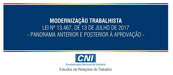 O Congresso Nacional aprovou uma reforma trabalhista modernizando a Consolidação das Leis do Trabalho (CLT) e as novas normas entrarão em vigor a partir do mês de novembro. Nesta seção, a CBIC divulgará as mudanças na legislação para que tanto o empregador quanto o trabalhador possam preparar-se para o novo momento das relações de trabalho no Brasil. O estudo foi preparado pela Confederação Nacional da Indústria (CNI).