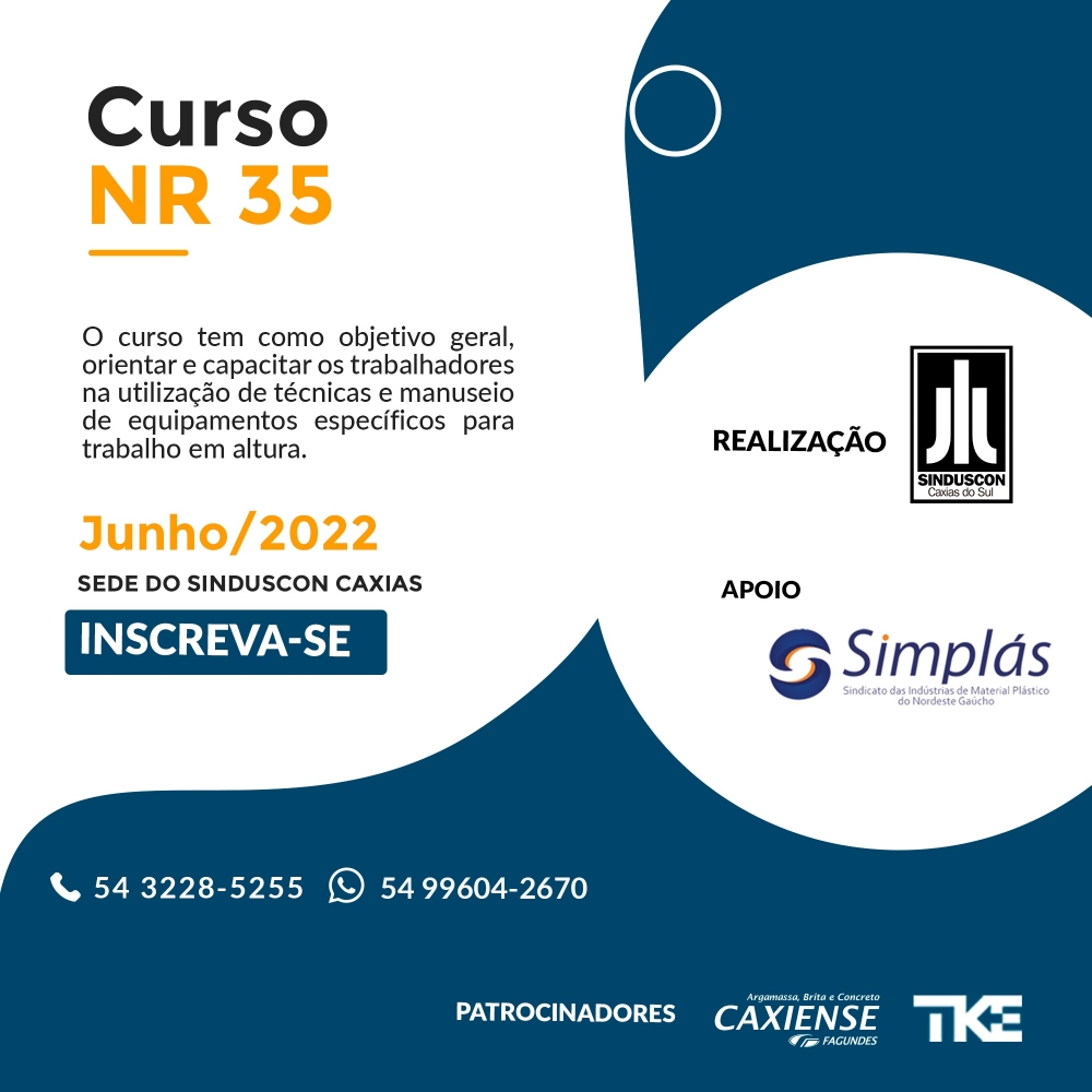 LOCAL: Sede do Sinduscon Caxias - R. Ítalo Victor Bersani, 1134 - Jardim America (Junto à CIC)