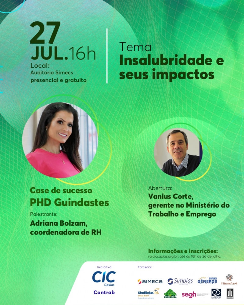 Data: 27 de julho - 16 horasLocal: Simecs - Junto ao prédio da CIC Caxias
