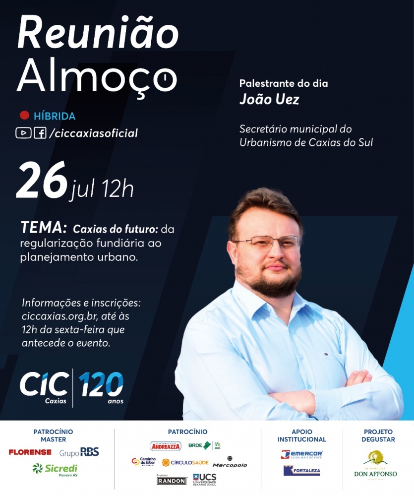 Na reunião-almoço de 26 de julho, o secretário João Uez falará sobre os números mais recentes e os avanços obtidos pela Secretaria Municipal do Urbanismo com a nova lei de regularização fundiária. Também estará na pauta o plano para transformar em áreas industriais aquelas regiões do município onde já existam instalações e atividades produtivas da indústria e do comércio.